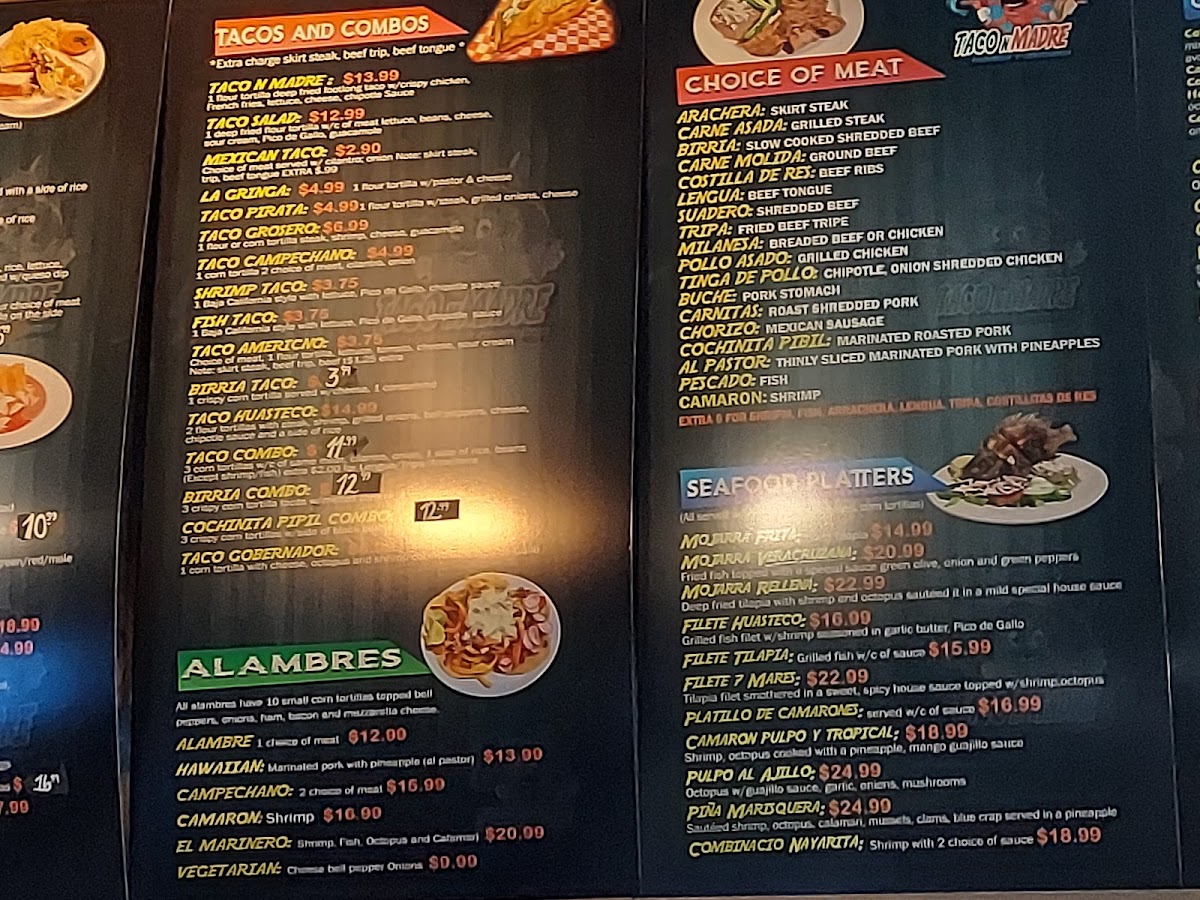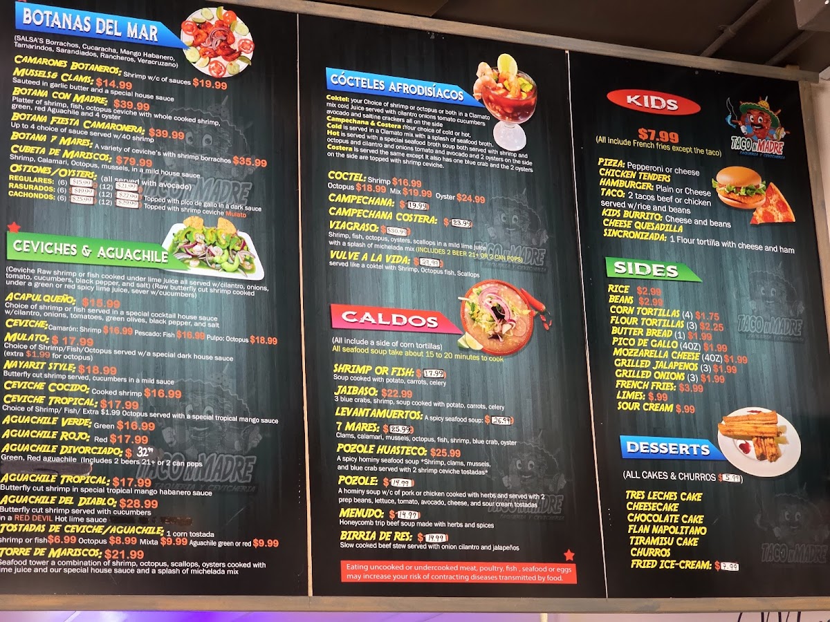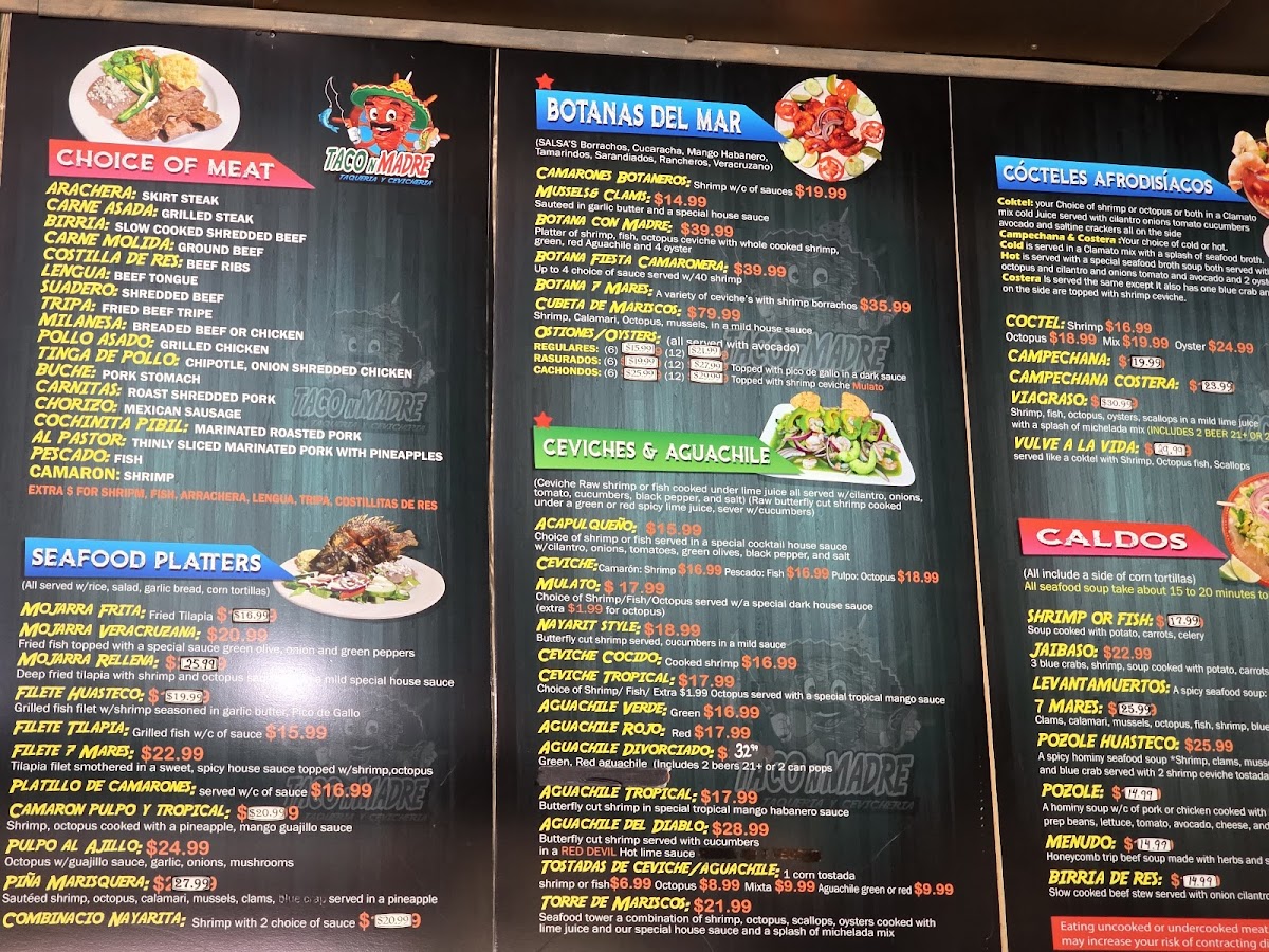 Introducing the Menu at Taco N Madre Taqueria Y Cevicheria